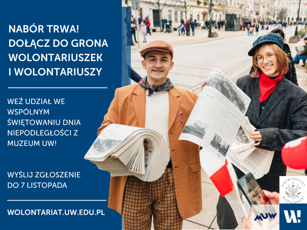 Chcesz uczcić 11 listopada w nietypowy sposób? Zostań wolontariuszem/wolontariuszką Muzeum Uniwersytetu Warszawskiego i weź udział w wyjątkowej inicjatywie, która pozwoli Ci świętować, zdobyć nowe doświadczenie i poznać super ludzi!